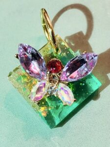 こちらの写真、土台のガラス面に廃棄宝石が反射してとても綺麗です!