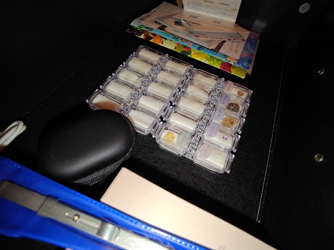 「ピンセット、ルーペ、未来のお迎え用枠も用意して、次の定期便や衝動買いに備えた宝石商ごっこのおもちゃ箱ができました!」という、見てるこちらまでワクワクしてしまうようなポストをされていた、れびより様✨
