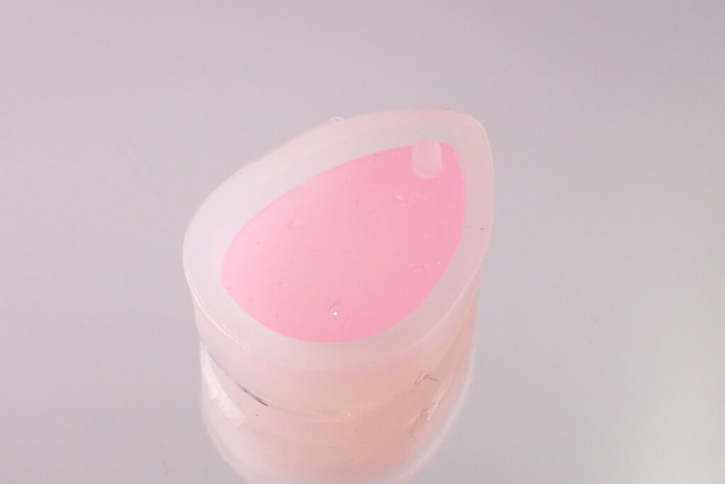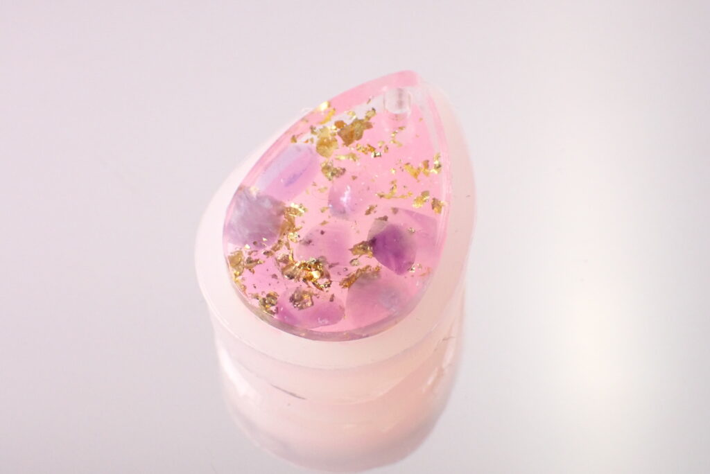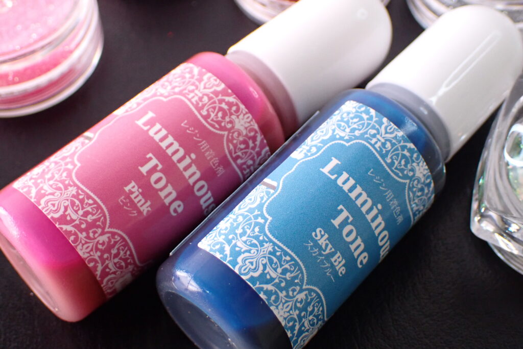 着色した下地を先に固め、その上にクリアなレジンを流し込んで固めます。