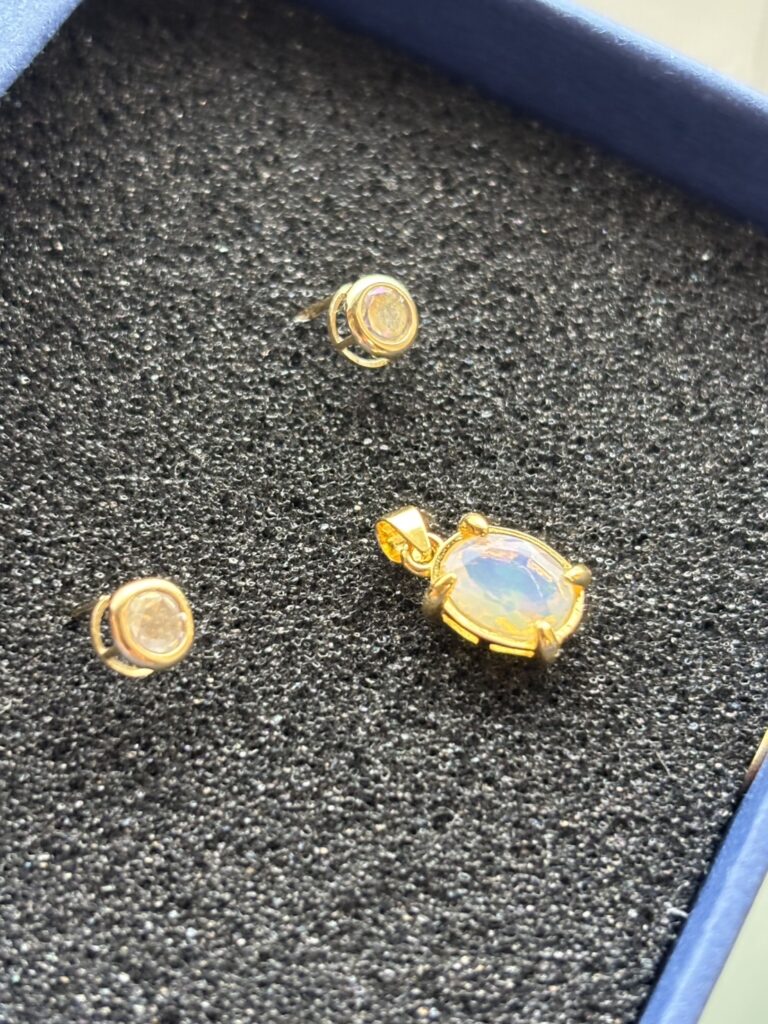 今回の場合は、レインボーオーラの「黄金がかった淡いミルク色に光ったのを見て「ゴールドにしたい」と思いました。」といったところからオパールやコーネルピンもゴールドのパーツを使用したそうです💍