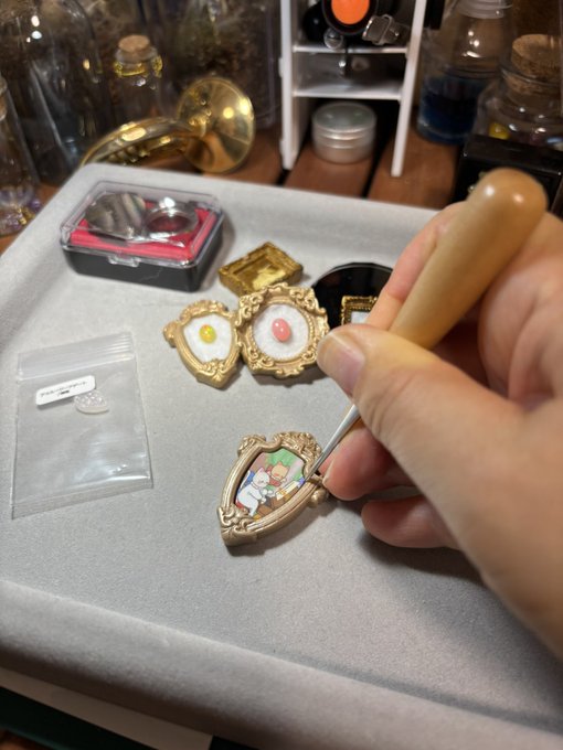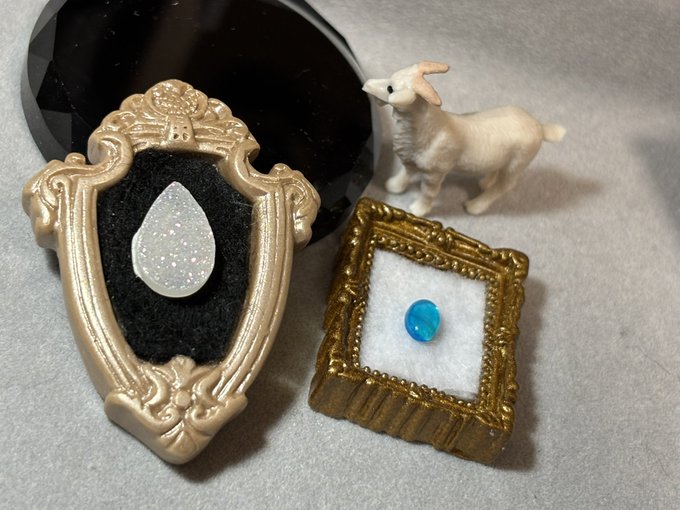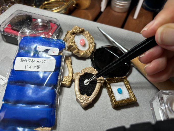 初めはルースケースをデコって飾っていました。色々と並べてるうちに額縁っぽくできないかなと思いまして、セリアのぬい用のミニチュアグッズに額縁があるのを見つけて作ることを思いつきました。