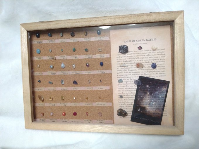 特に気に入っている飾り方は標本です。定期便を購入するときに他の購入者様が作成されており、私も標本ができるまで集めたいなと思いました。ルースで初めて作成したのも鉱石標本です。