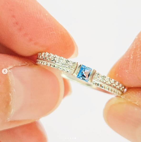 想像通り、試作を重ねたリングの腕と、とても相性が良く、シンプルで着けやすく、それでいて華やかなイメージのリングになったのでとても満足しています🥰