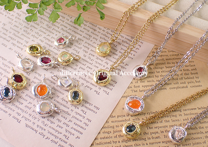 そのため、近隣の工房さんに依頼させていただき、溶かしたシルバーやブラス(真鍮)に彫り留めをしてもらうという形でアクセサリーにしています。
