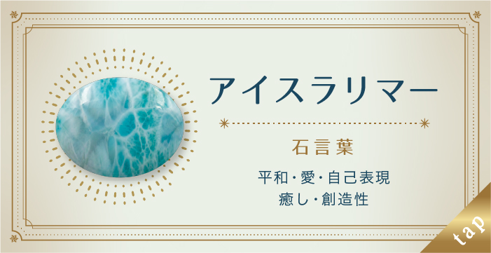 全体的に穏やかに過ごせそう。おみくじや宝くじなど「運試し」的なイベントは楽しむことを目的とするなら相性がよい流れです。ただし、本気になりすぎたり真に受けすぎるのはやめましょう。ちなみに鈴の音・風鈴の音など「リンリン」と鳴るものがラッキーアイテムのようです。可憐な音色に導かれるチャンスがあればぜひ誘われてみてください◎アイスラリマーは持ち主の神聖を高め、潜在能力を開花させてくれる石です。ウキウキを大切に♪