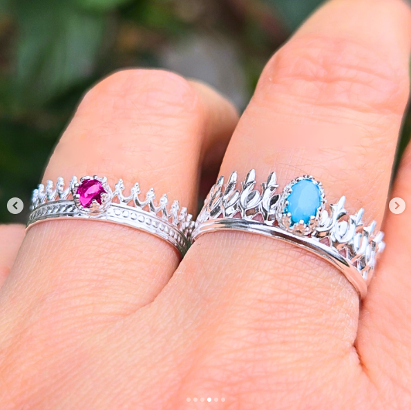 王冠モチーフになっていて、それぞれ中央に添えられたルースが映えますね✨
