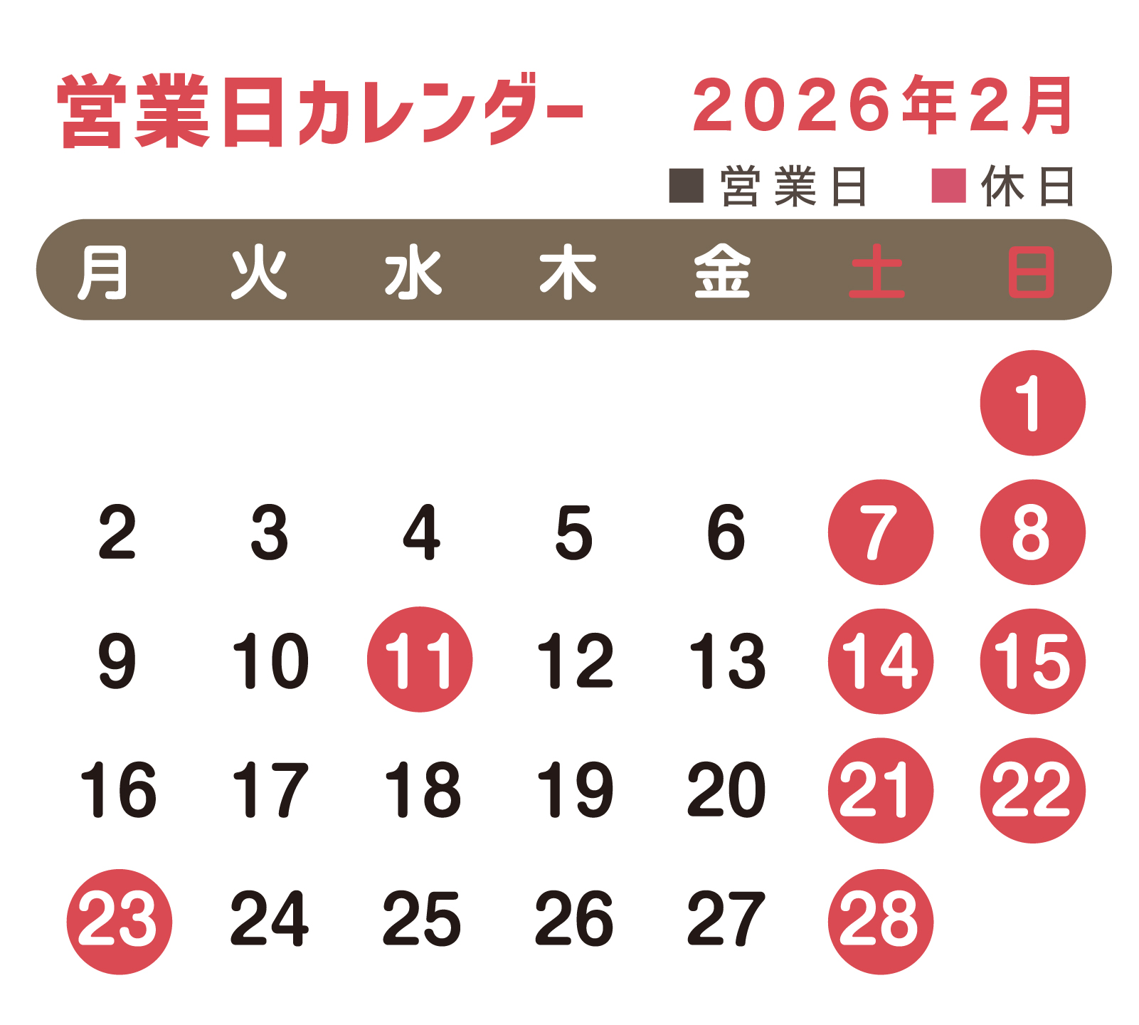 弊社の2月営業日のお知らせです📢