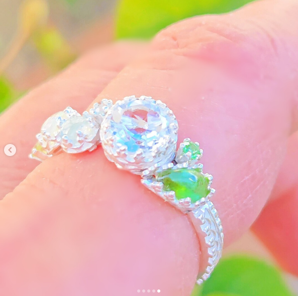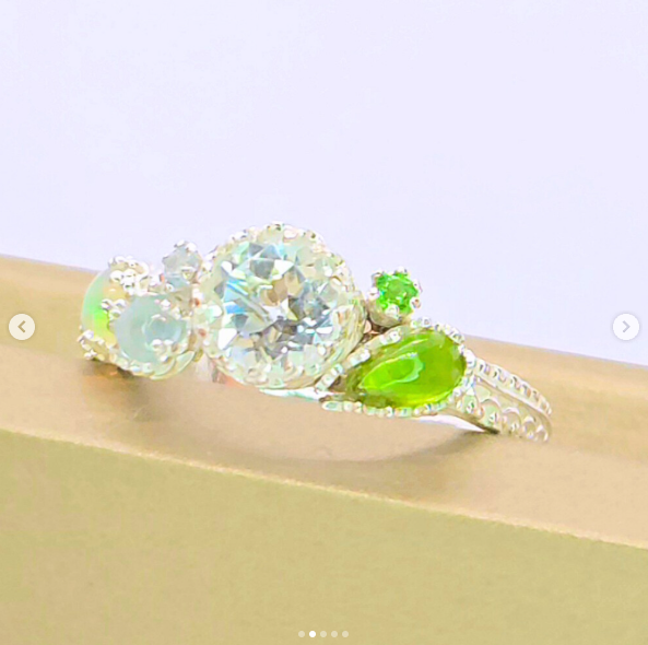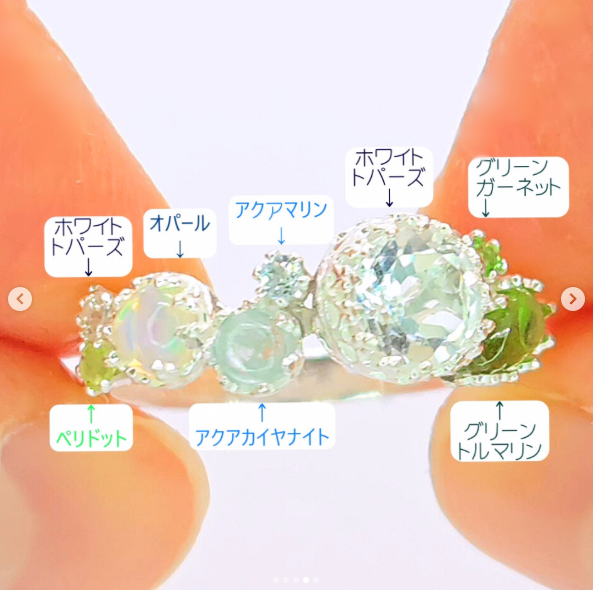 制作の難易度が高そうですが、どうしてこんなに沢山の石を使ったリングを作ろうと思ったのかもお聞きしました♫