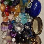 このデザインに至ったのは、大きさや色の違うカボションの宝石を並べてレジンで固めればステンドグラスみたいな光と色が調和する作品にならないかと思い至ったものでした。