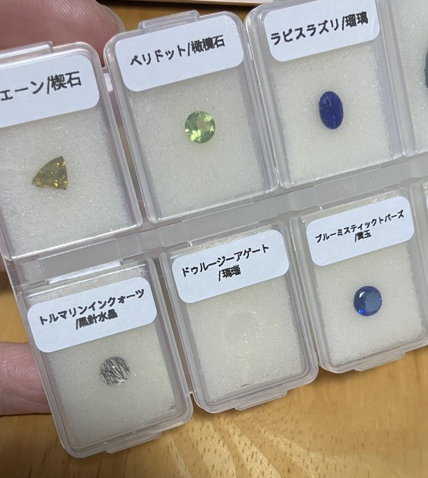あまり収納スペースはとれないけれど色々な宝石を一度に眺めたいという事で、ルースケースより小さいお薬ケースに至りました。