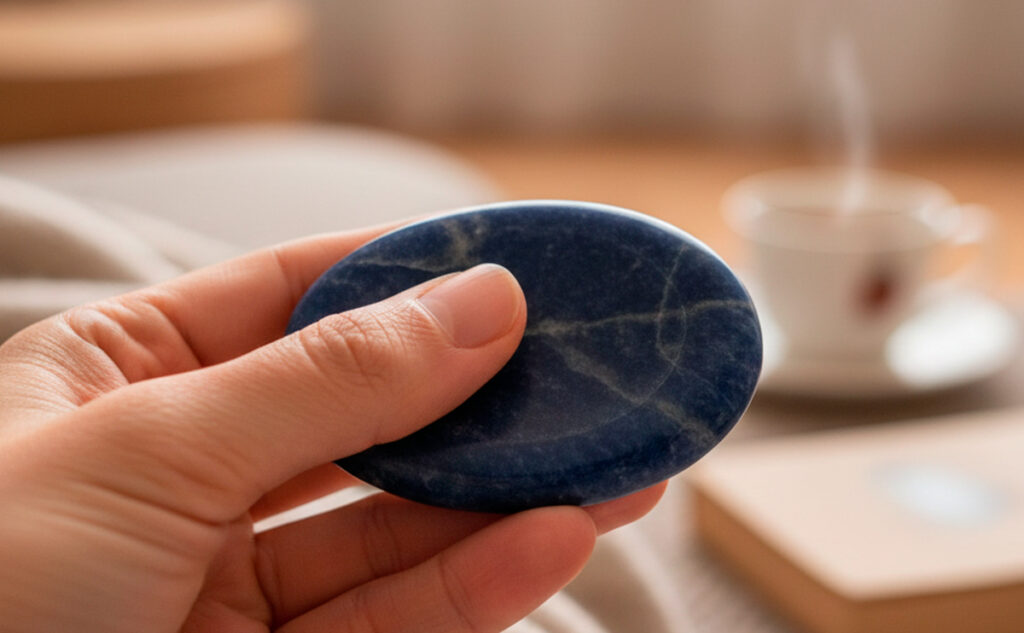 仕事の合間や、夜寝る前のリラックスタイム。手の中で石の重みや温度を感じることで、高ぶった神経をふんわりと落ち着かせてくれるといわれています。