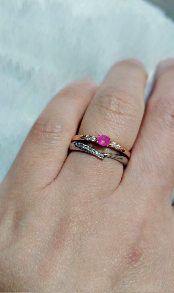 鮮やかなピンクが映える素敵なリングになりましたね😳
