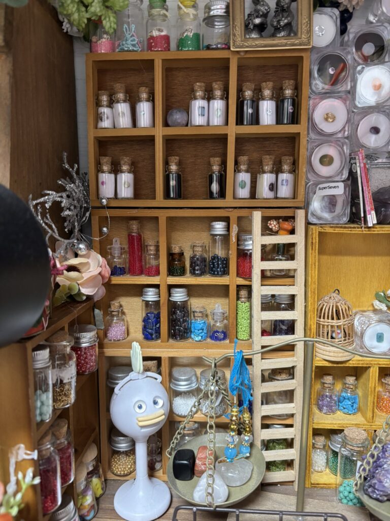 たくさんのルースをドールハウスに飾りたいという思いから、今回の小瓶収納を選ばれたそうです♫