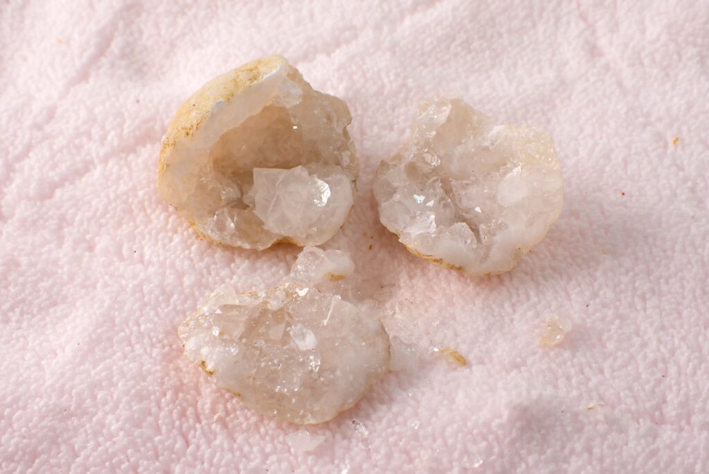 インドから割られていないジオードを取り寄せしました! これまで半分にカットしてもらっていたジオードですが、自分で割るとどうなるのかな?と思って挑戦してみました。