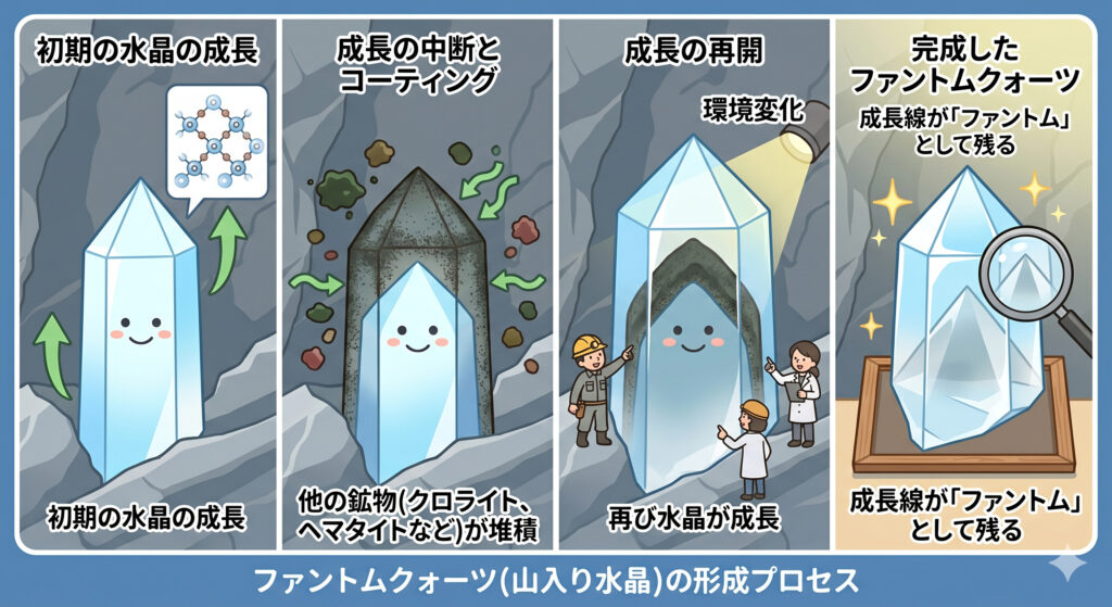 一度は停滞した結晶が、再び成長して形成されるファントムクォーツ。